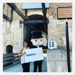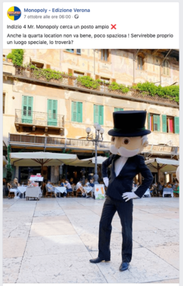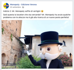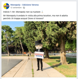 Per questo se volete seguire le attività della nostra simpatica mascotte tenete sott’occhio la pagina Facebook – Monopoly Verona e l’account Instagram Monopoly Verona