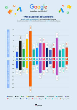 The average conversion rate for Google ads across all sectors is 3.75% for network search and 0.77% for display.