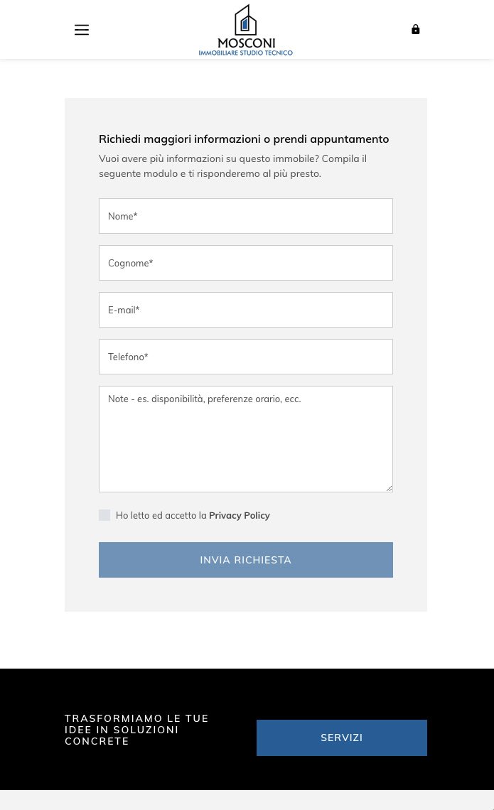 Abbiamo digitalizzato i valori di Mosconi nello sviluppo di un gestionale custom made per la gestione degli annunci immobiliari, gli appuntamenti e il tracking delle richieste. La piattaforma prevede anche una sezione dedicata al proprietario per monitorare in tempo reale le attività svolte dall'agenzia.